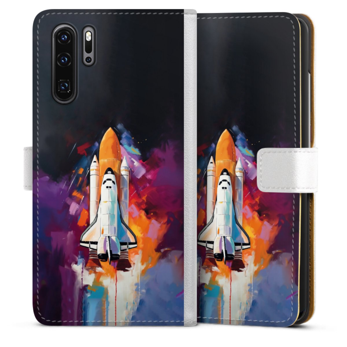 For our Sideflip Case we are using our advanced direct printing technology. The back and frontside are fully printabale, the inside of the phone bag is left unprinted. You can order the phone case without print, printed completely or also with a partial print.