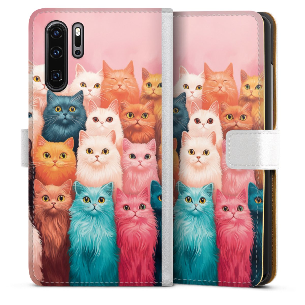 For our Sideflip Case we are using our advanced direct printing technology. The back and frontside are fully printabale, the inside of the phone bag is left unprinted. You can order the phone case without print, printed completely or also with a partial print.