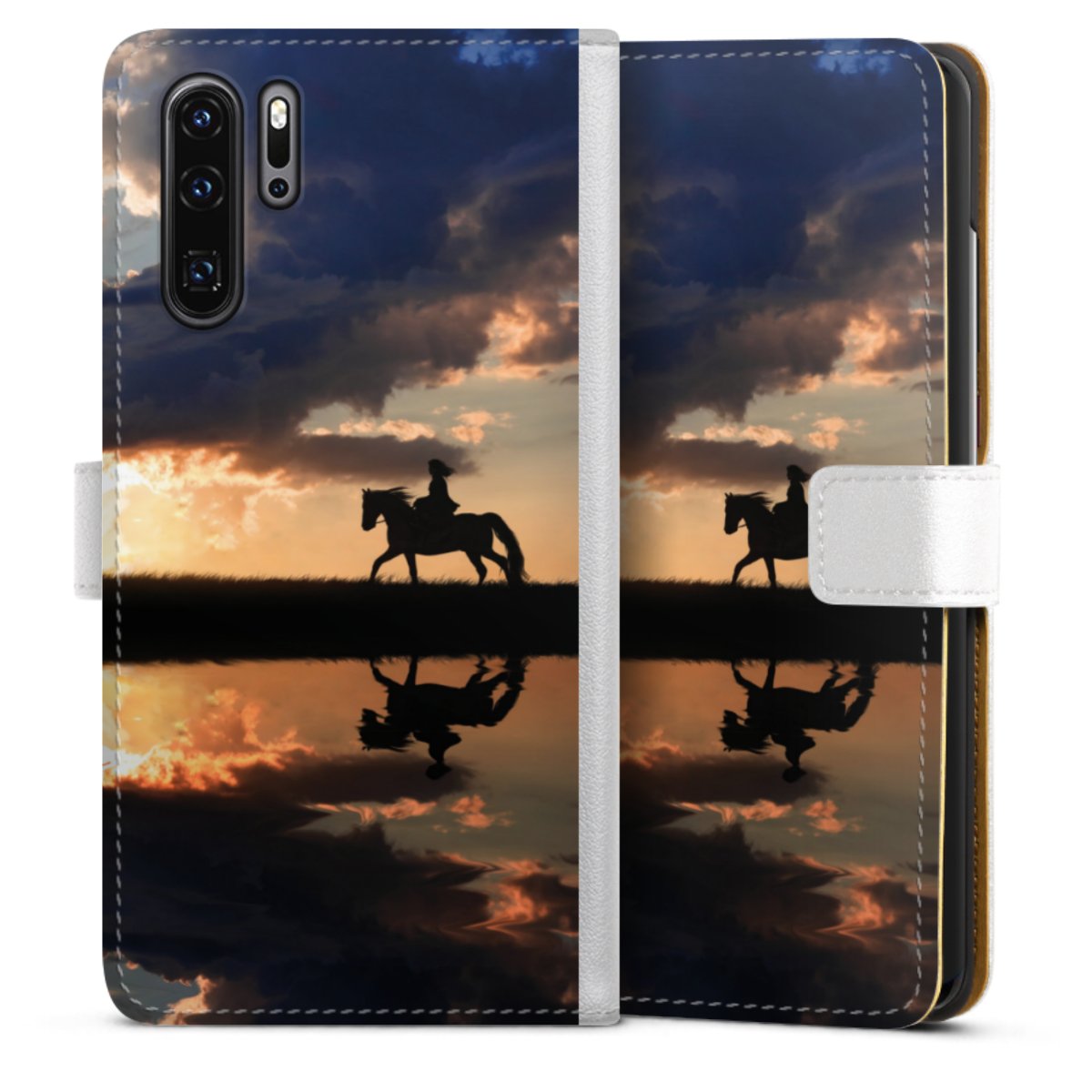For our Sideflip Case we are using our advanced direct printing technology. The back and frontside are fully printabale, the inside of the phone bag is left unprinted. You can order the phone case without print, printed completely or also with a partial print.