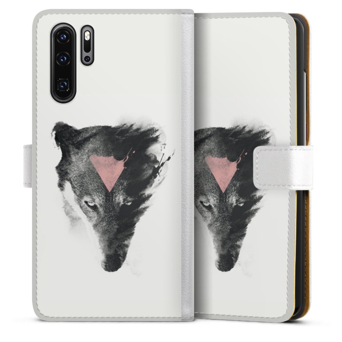 For our Sideflip Case we are using our advanced direct printing technology. The back and frontside are fully printabale, the inside of the phone bag is left unprinted. You can order the phone case without print, printed completely or also with a partial print.