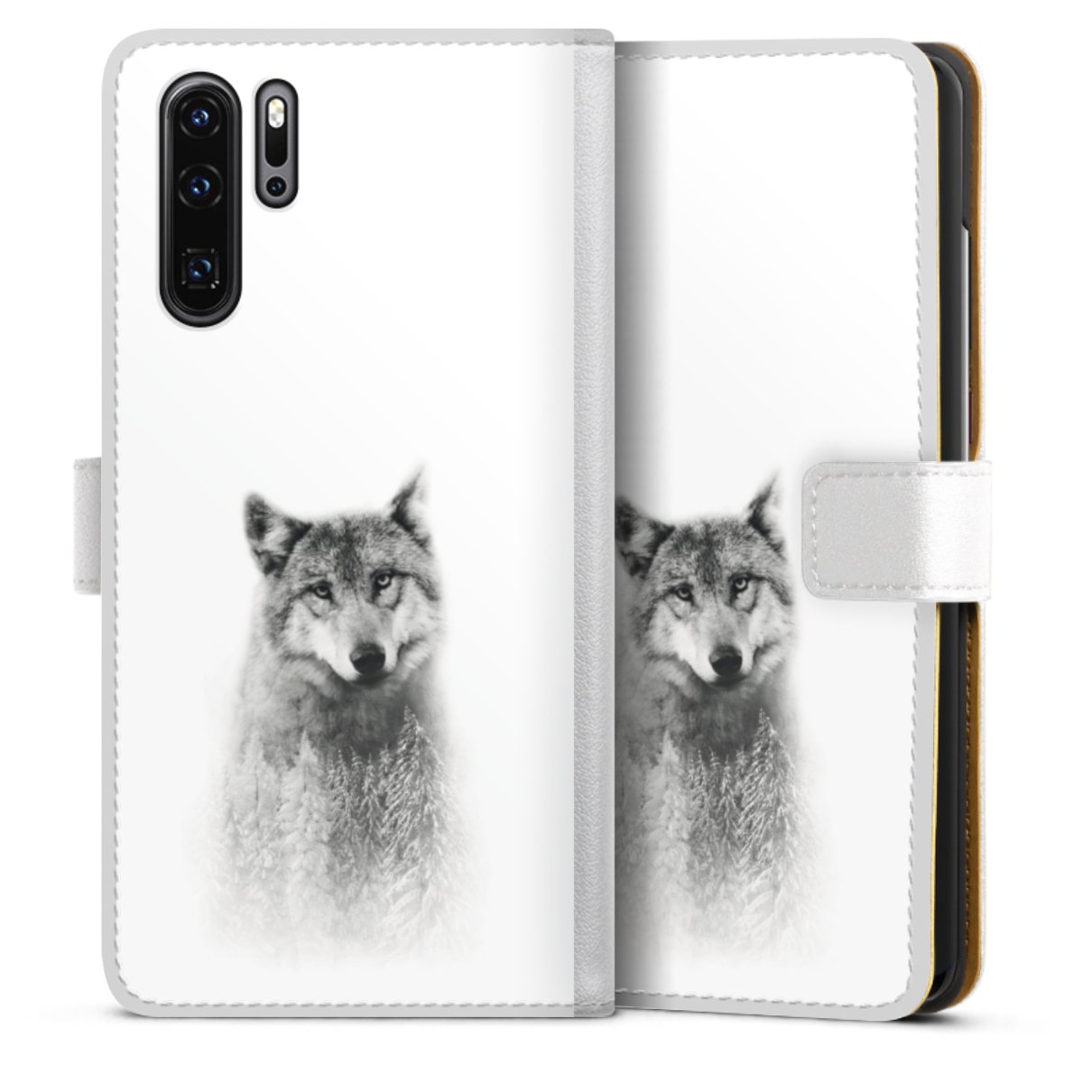 For our Sideflip Case we are using our advanced direct printing technology. The back and frontside are fully printabale, the inside of the phone bag is left unprinted. You can order the phone case without print, printed completely or also with a partial print.