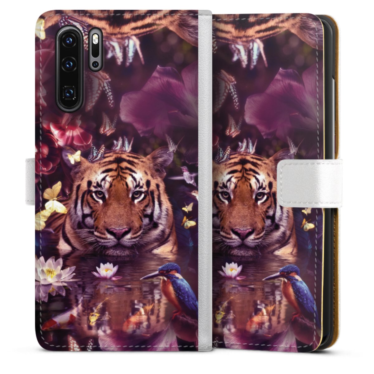 For our Sideflip Case we are using our advanced direct printing technology. The back and frontside are fully printabale, the inside of the phone bag is left unprinted. You can order the phone case without print, printed completely or also with a partial print.