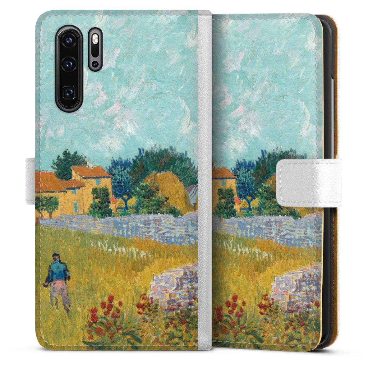 For our Sideflip Case we are using our advanced direct printing technology. The back and frontside are fully printabale, the inside of the phone bag is left unprinted. You can order the phone case without print, printed completely or also with a partial print.