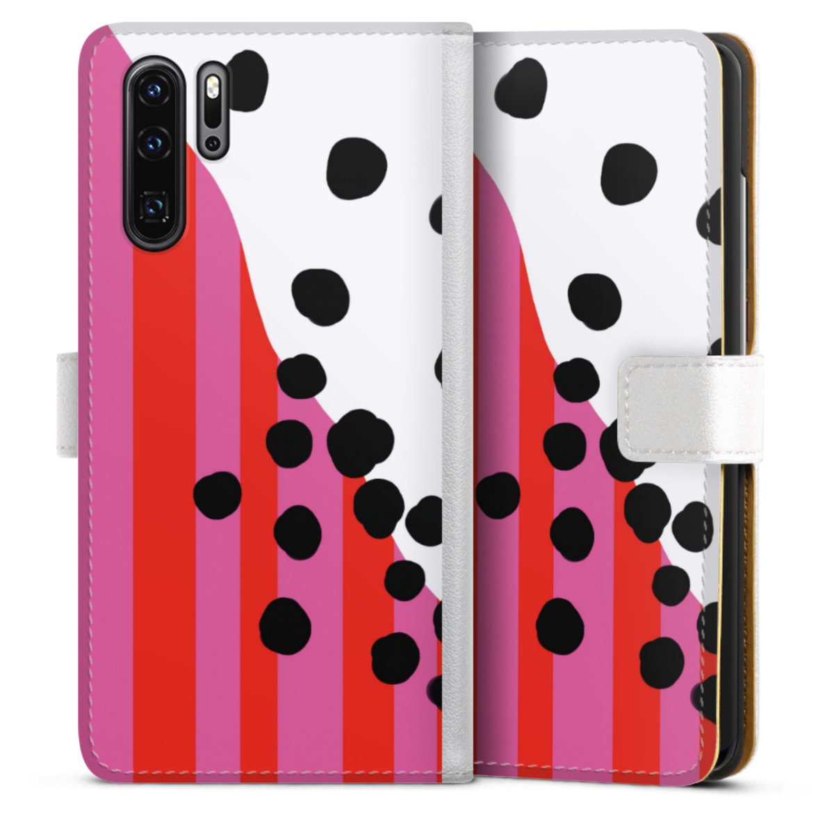 For our Sideflip Case we are using our advanced direct printing technology. The back and frontside are fully printabale, the inside of the phone bag is left unprinted. You can order the phone case without print, printed completely or also with a partial print.