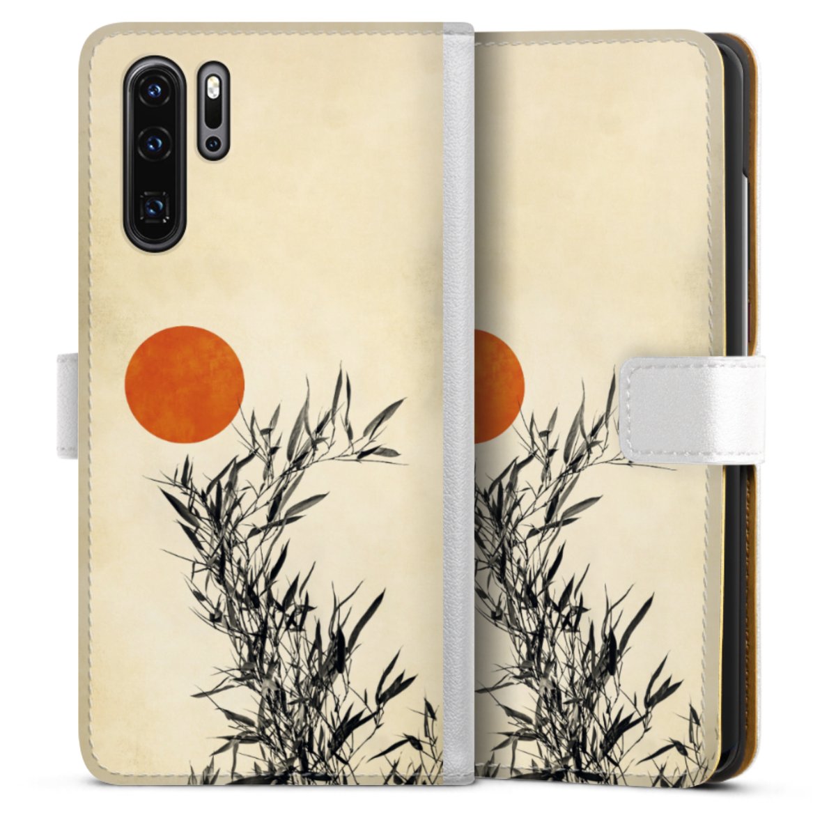 For our Sideflip Case we are using our advanced direct printing technology. The back and frontside are fully printabale, the inside of the phone bag is left unprinted. You can order the phone case without print, printed completely or also with a partial print.