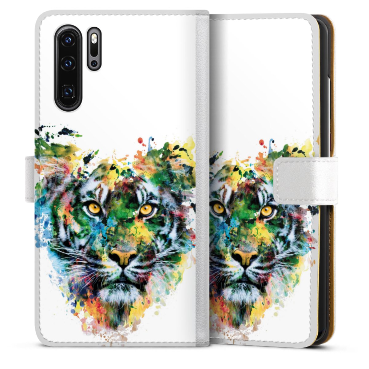 For our Sideflip Case we are using our advanced direct printing technology. The back and frontside are fully printabale, the inside of the phone bag is left unprinted. You can order the phone case without print, printed completely or also with a partial print.