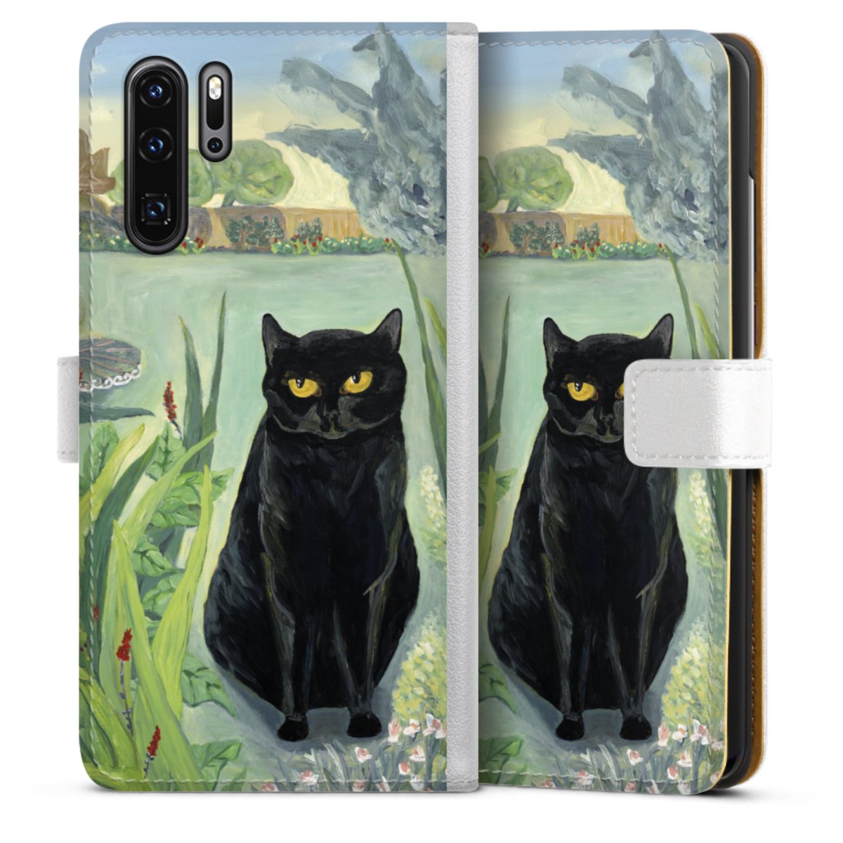 For our Sideflip Case we are using our advanced direct printing technology. The back and frontside are fully printabale, the inside of the phone bag is left unprinted. You can order the phone case without print, printed completely or also with a partial print.