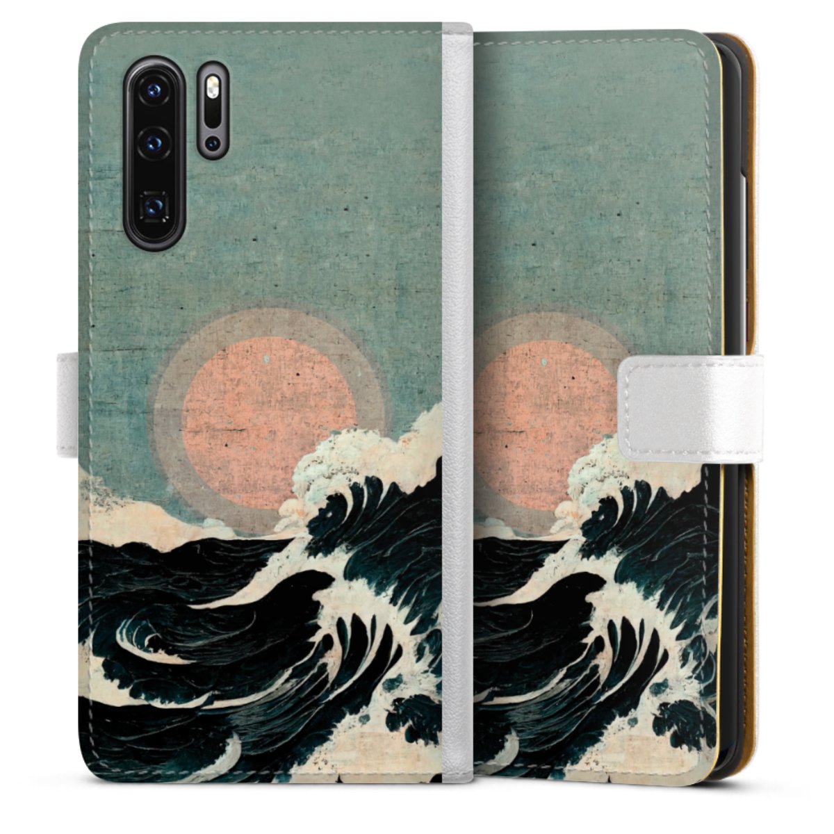 For our Sideflip Case we are using our advanced direct printing technology. The back and frontside are fully printabale, the inside of the phone bag is left unprinted. You can order the phone case without print, printed completely or also with a partial print.