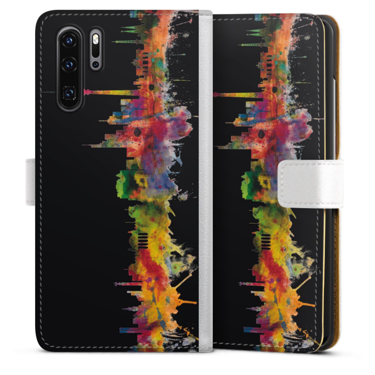 For our Sideflip Case we are using our advanced direct printing technology. The back and frontside are fully printabale, the inside of the phone bag is left unprinted. You can order the phone case without print, printed completely or also with a partial print.