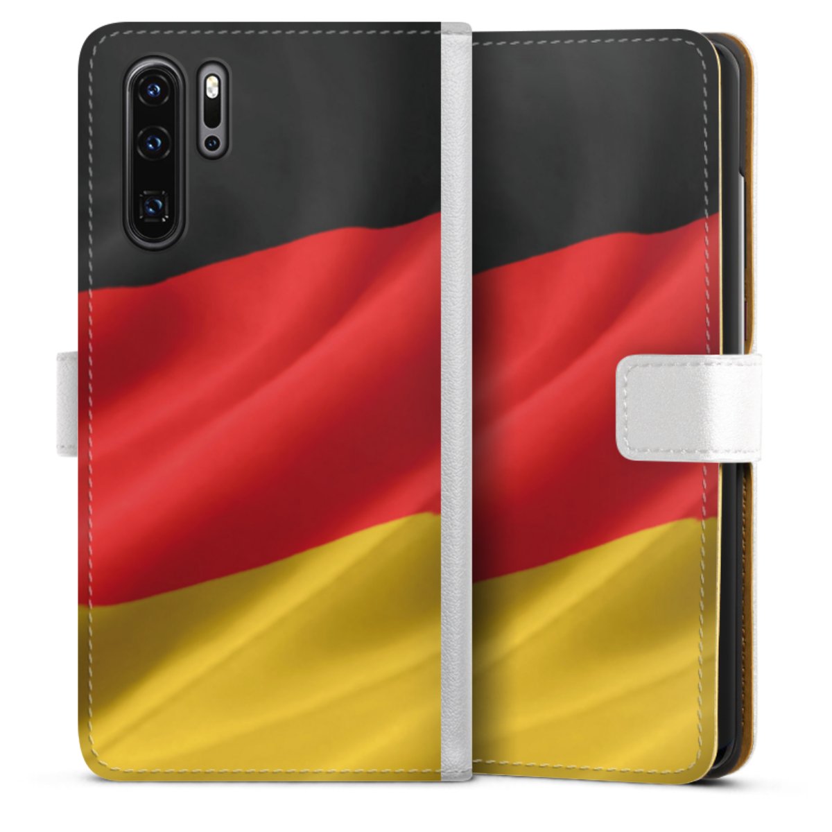 For our Sideflip Case we are using our advanced direct printing technology. The back and frontside are fully printabale, the inside of the phone bag is left unprinted. You can order the phone case without print, printed completely or also with a partial print.
