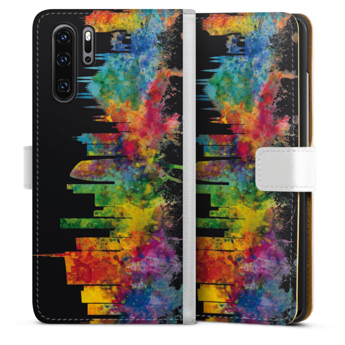 For our Sideflip Case we are using our advanced direct printing technology. The back and frontside are fully printabale, the inside of the phone bag is left unprinted. You can order the phone case without print, printed completely or also with a partial print.