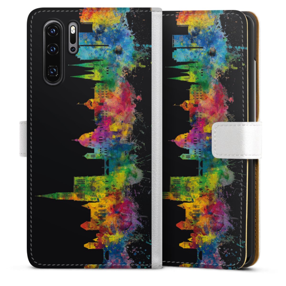For our Sideflip Case we are using our advanced direct printing technology. The back and frontside are fully printabale, the inside of the phone bag is left unprinted. You can order the phone case without print, printed completely or also with a partial print.