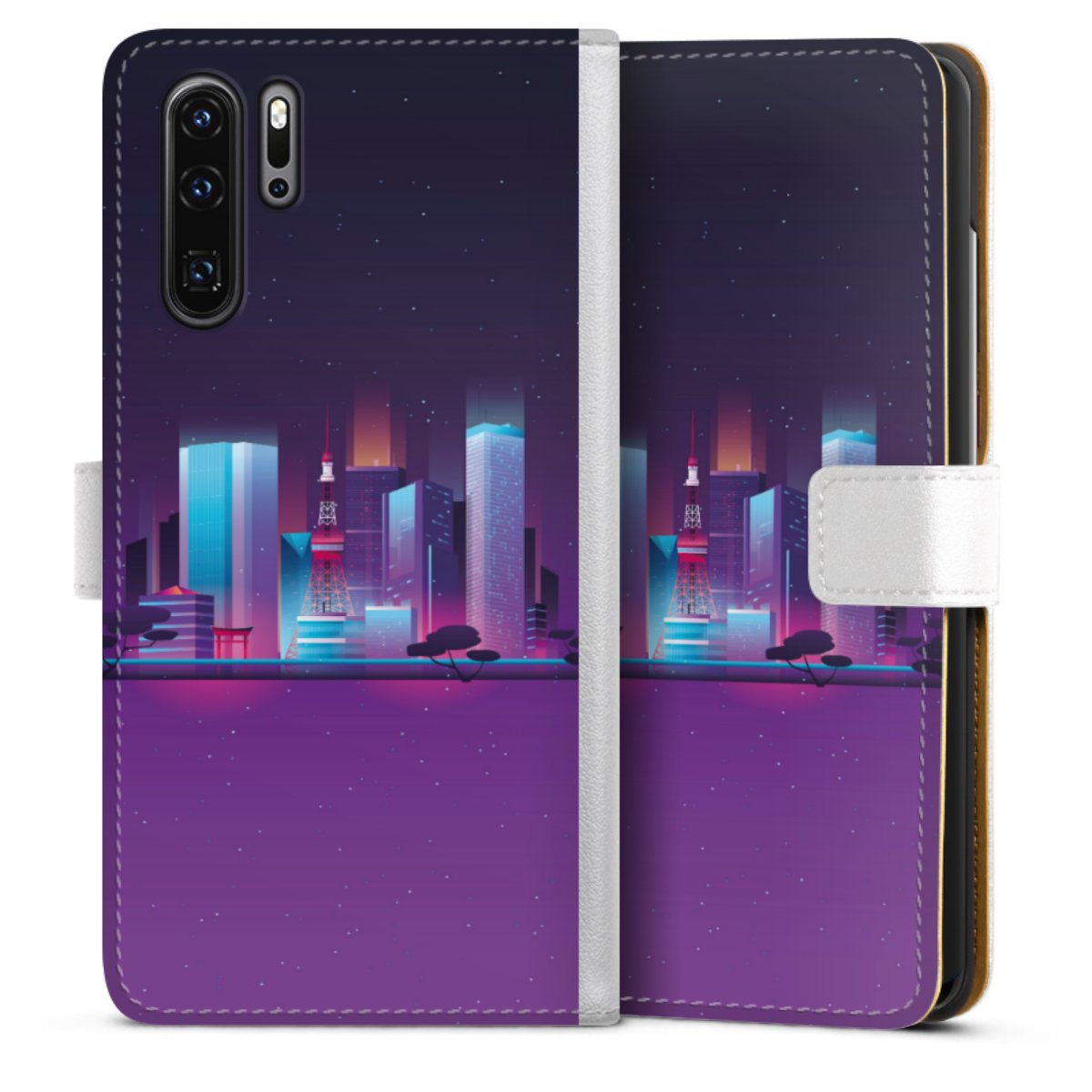 For our Sideflip Case we are using our advanced direct printing technology. The back and frontside are fully printabale, the inside of the phone bag is left unprinted. You can order the phone case without print, printed completely or also with a partial print.