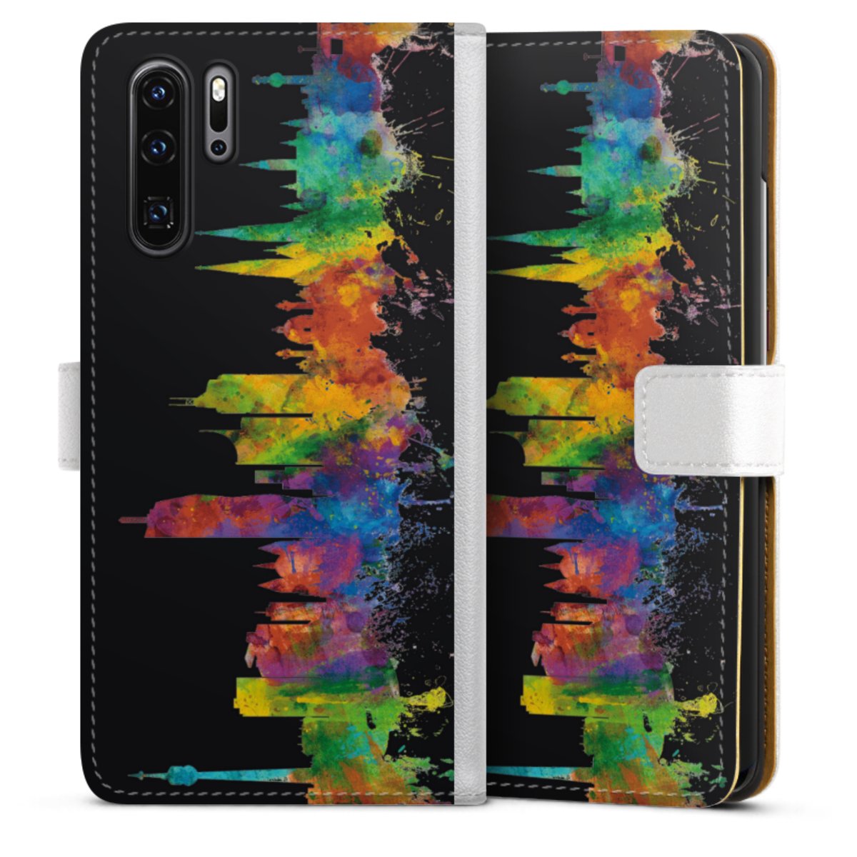 For our Sideflip Case we are using our advanced direct printing technology. The back and frontside are fully printabale, the inside of the phone bag is left unprinted. You can order the phone case without print, printed completely or also with a partial print.