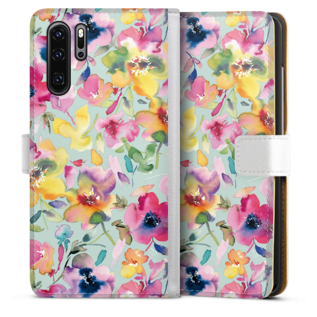 For our Sideflip Case we are using our advanced direct printing technology. The back and frontside are fully printabale, the inside of the phone bag is left unprinted. You can order the phone case without print, printed completely or also with a partial print.