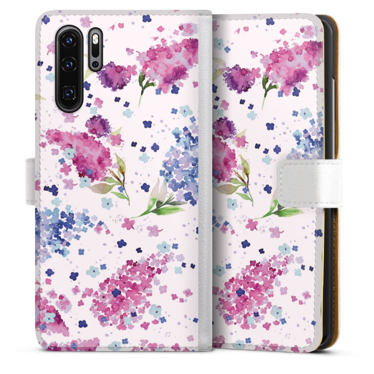 For our Sideflip Case we are using our advanced direct printing technology. The back and frontside are fully printabale, the inside of the phone bag is left unprinted. You can order the phone case without print, printed completely or also with a partial print.