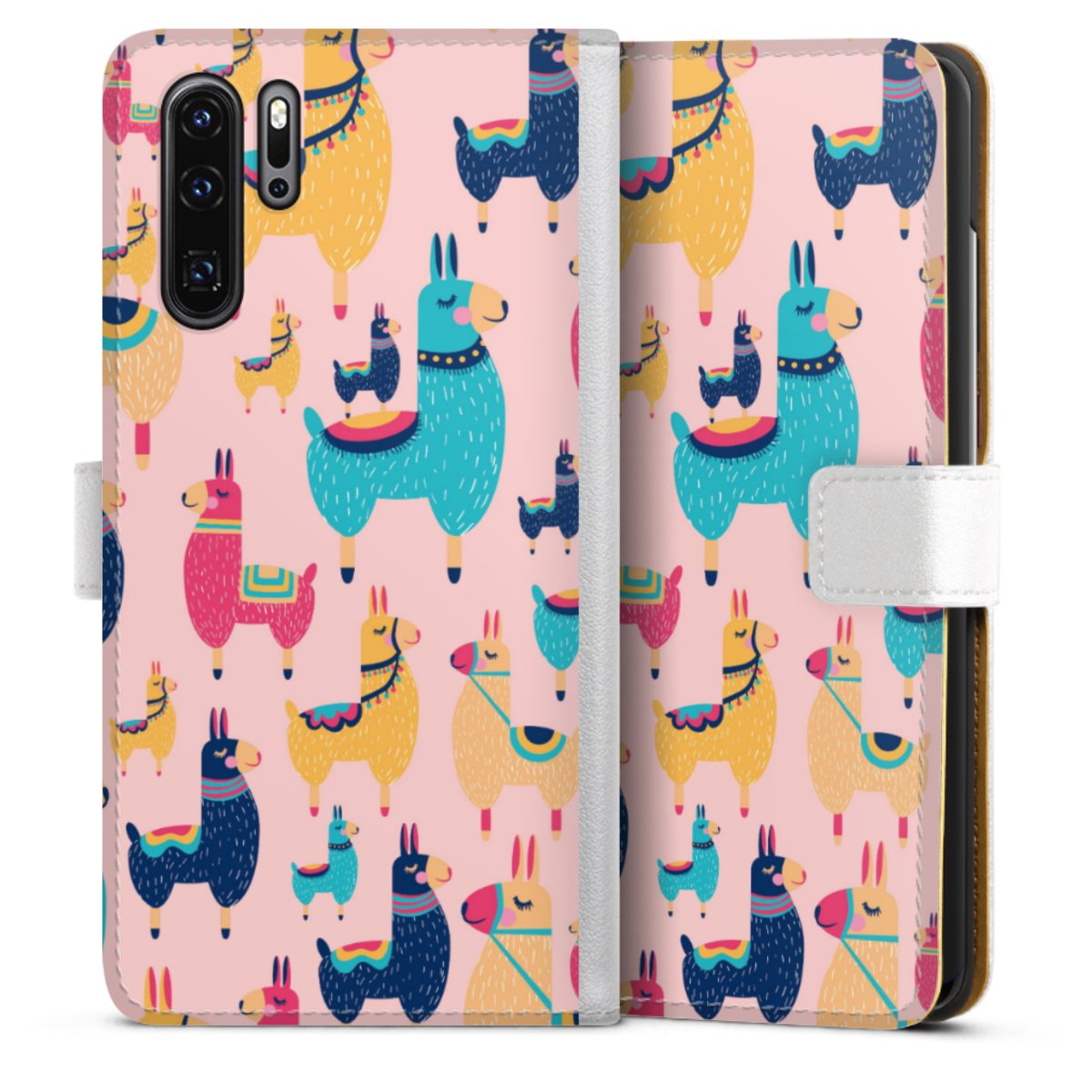For our Sideflip Case we are using our advanced direct printing technology. The back and frontside are fully printabale, the inside of the phone bag is left unprinted. You can order the phone case without print, printed completely or also with a partial print.