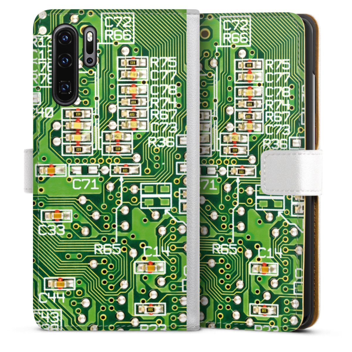 For our Sideflip Case we are using our advanced direct printing technology. The back and frontside are fully printabale, the inside of the phone bag is left unprinted. You can order the phone case without print, printed completely or also with a partial print.