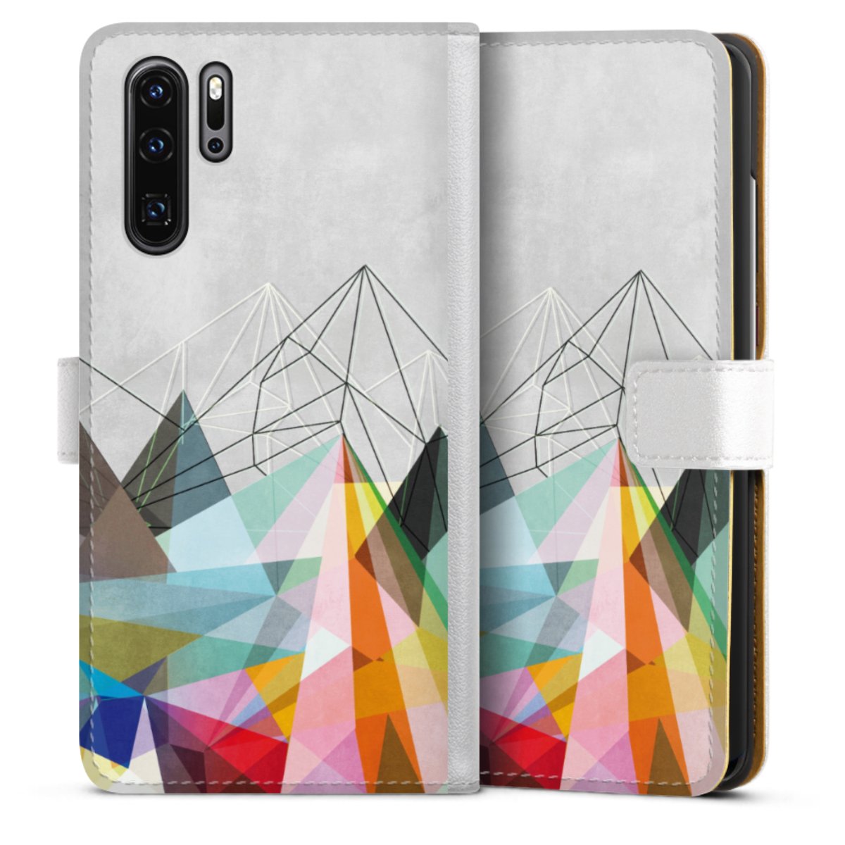 For our Sideflip Case we are using our advanced direct printing technology. The back and frontside are fully printabale, the inside of the phone bag is left unprinted. You can order the phone case without print, printed completely or also with a partial print.
