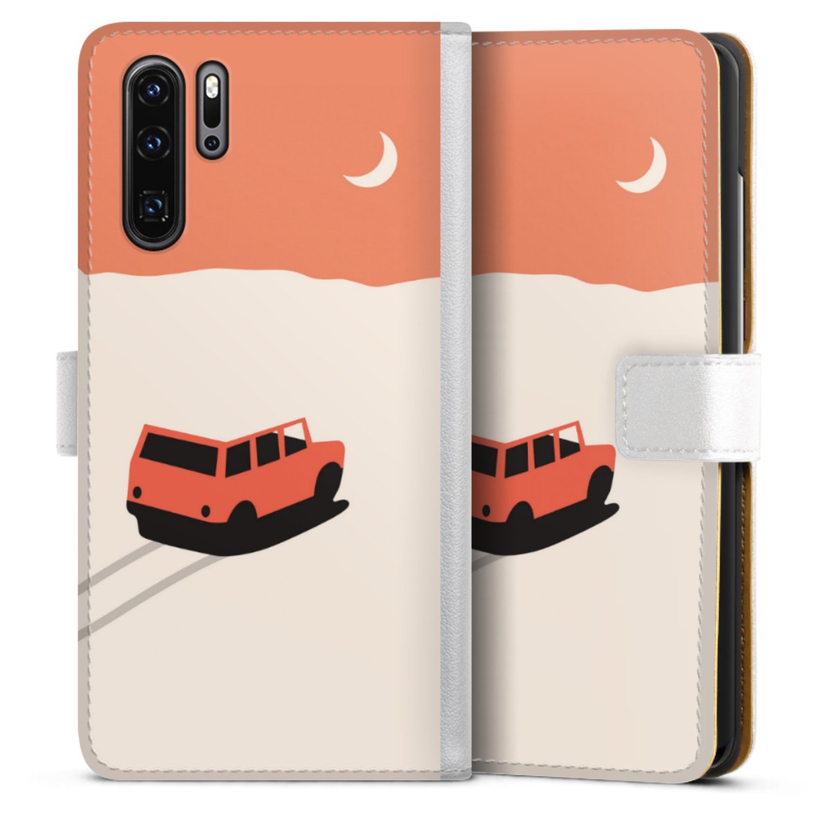 For our Sideflip Case we are using our advanced direct printing technology. The back and frontside are fully printabale, the inside of the phone bag is left unprinted. You can order the phone case without print, printed completely or also with a partial print.
