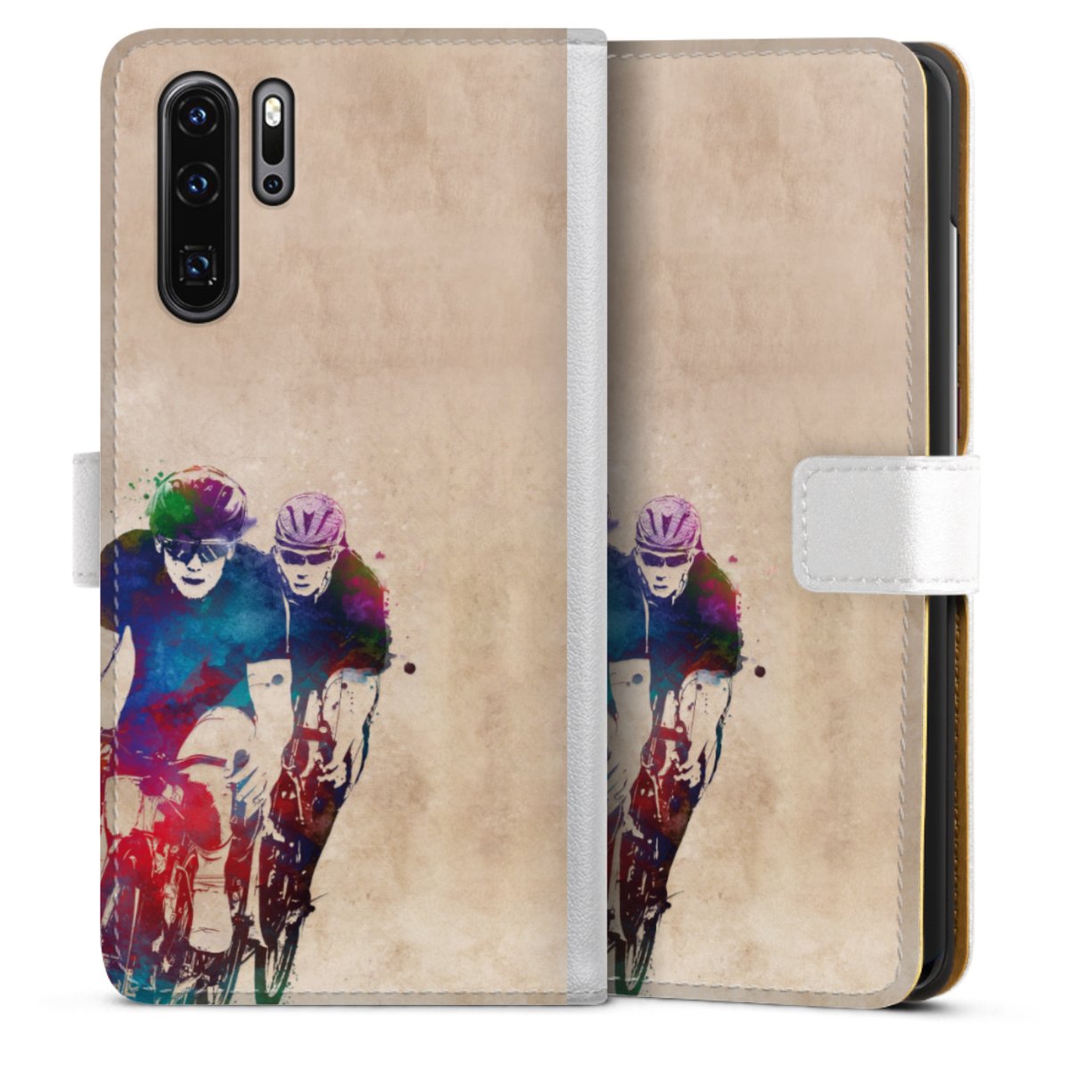For our Sideflip Case we are using our advanced direct printing technology. The back and frontside are fully printabale, the inside of the phone bag is left unprinted. You can order the phone case without print, printed completely or also with a partial print.