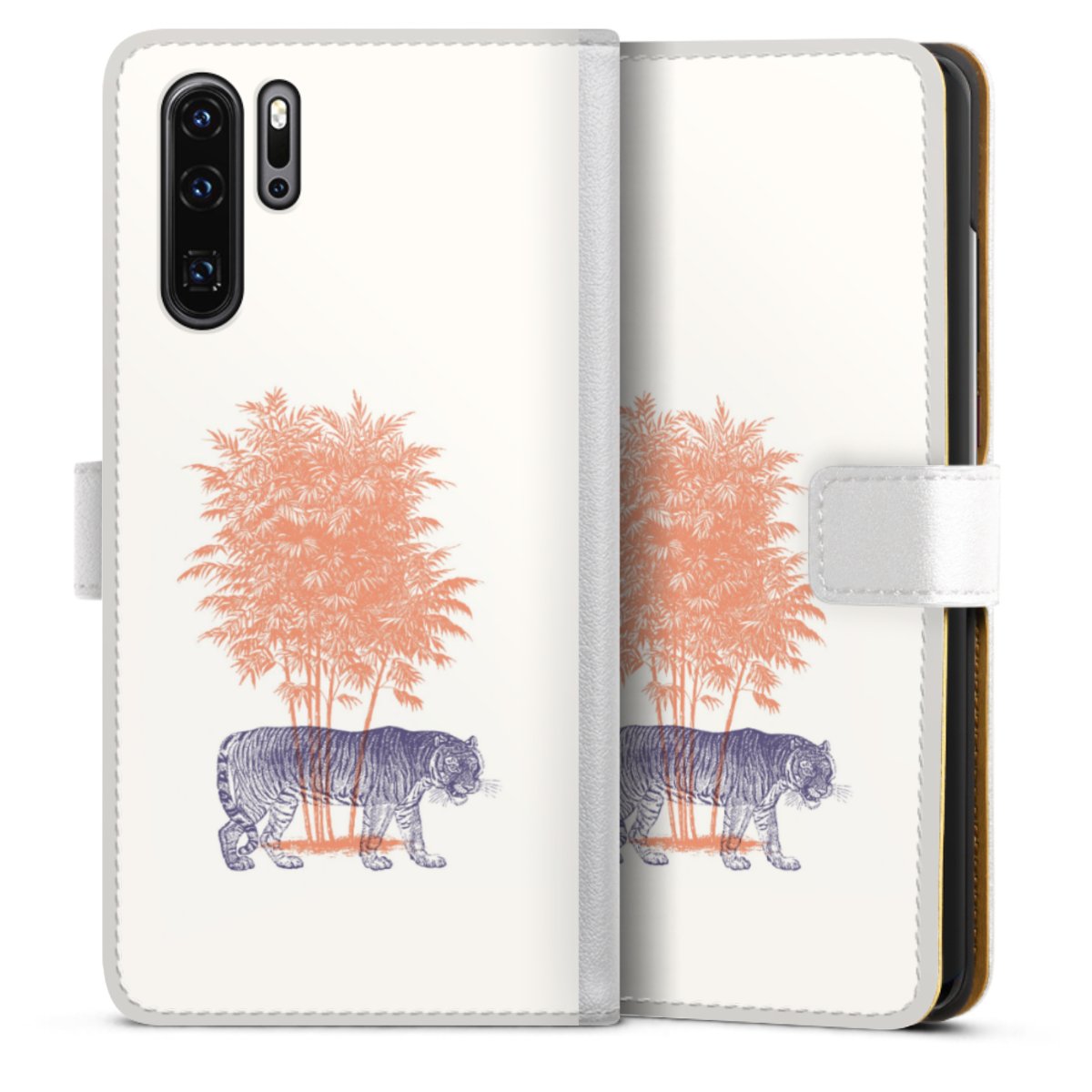 For our Sideflip Case we are using our advanced direct printing technology. The back and frontside are fully printabale, the inside of the phone bag is left unprinted. You can order the phone case without print, printed completely or also with a partial print.