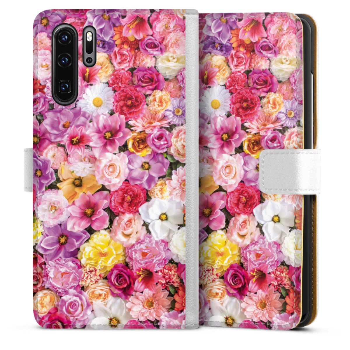 For our Sideflip Case we are using our advanced direct printing technology. The back and frontside are fully printabale, the inside of the phone bag is left unprinted. You can order the phone case without print, printed completely or also with a partial print.
