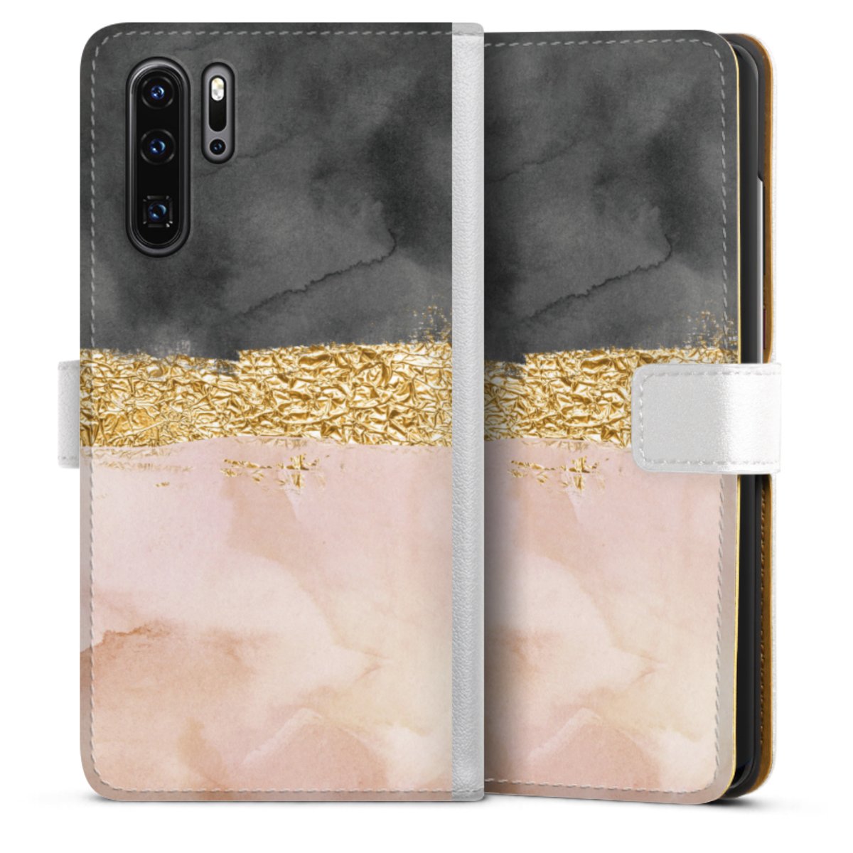 For our Sideflip Case we are using our advanced direct printing technology. The back and frontside are fully printabale, the inside of the phone bag is left unprinted. You can order the phone case without print, printed completely or also with a partial print.