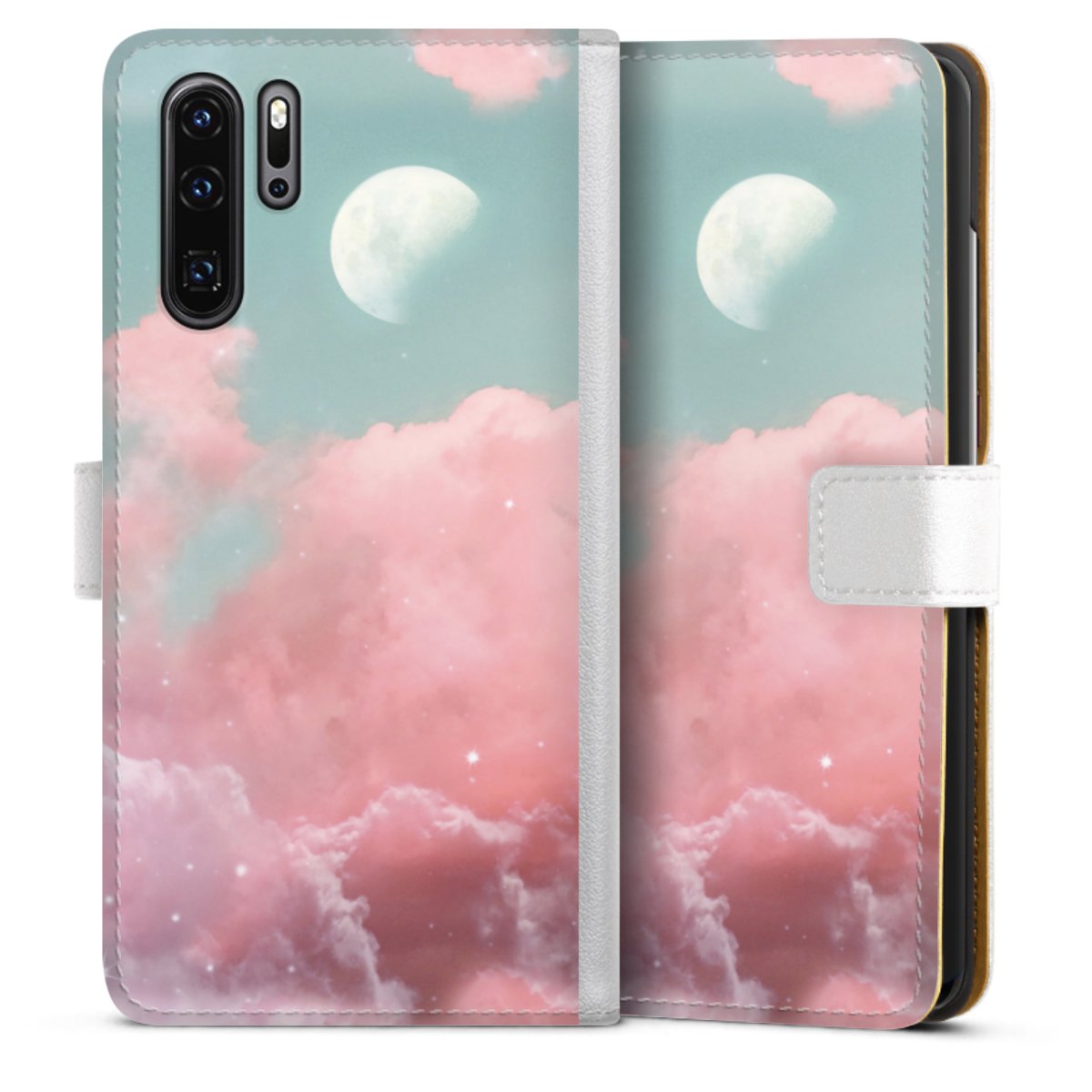 For our Sideflip Case we are using our advanced direct printing technology. The back and frontside are fully printabale, the inside of the phone bag is left unprinted. You can order the phone case without print, printed completely or also with a partial print.