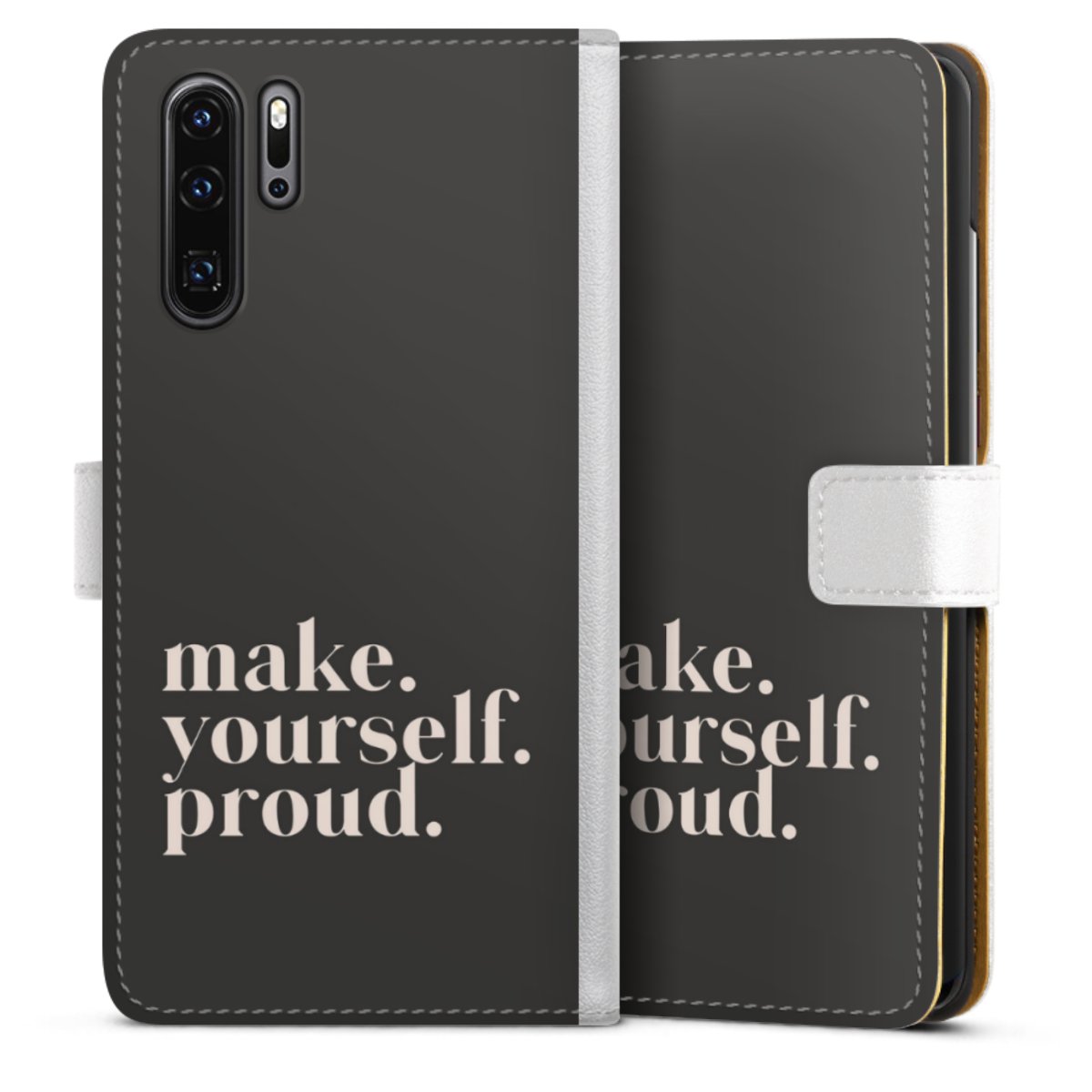 For our Sideflip Case we are using our advanced direct printing technology. The back and frontside are fully printabale, the inside of the phone bag is left unprinted. You can order the phone case without print, printed completely or also with a partial print.