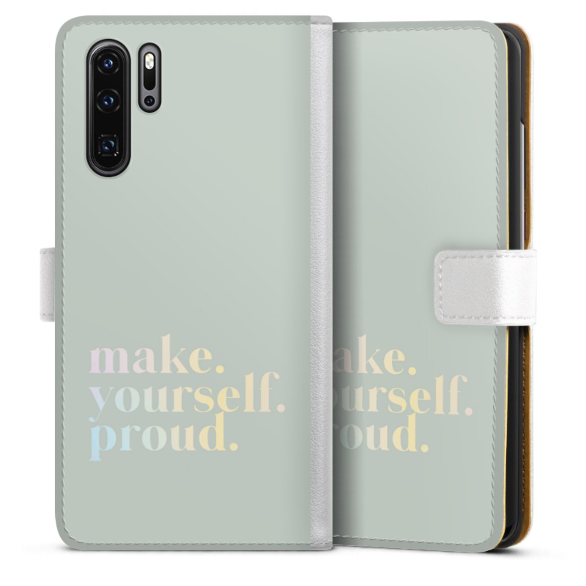 For our Sideflip Case we are using our advanced direct printing technology. The back and frontside are fully printabale, the inside of the phone bag is left unprinted. You can order the phone case without print, printed completely or also with a partial print.