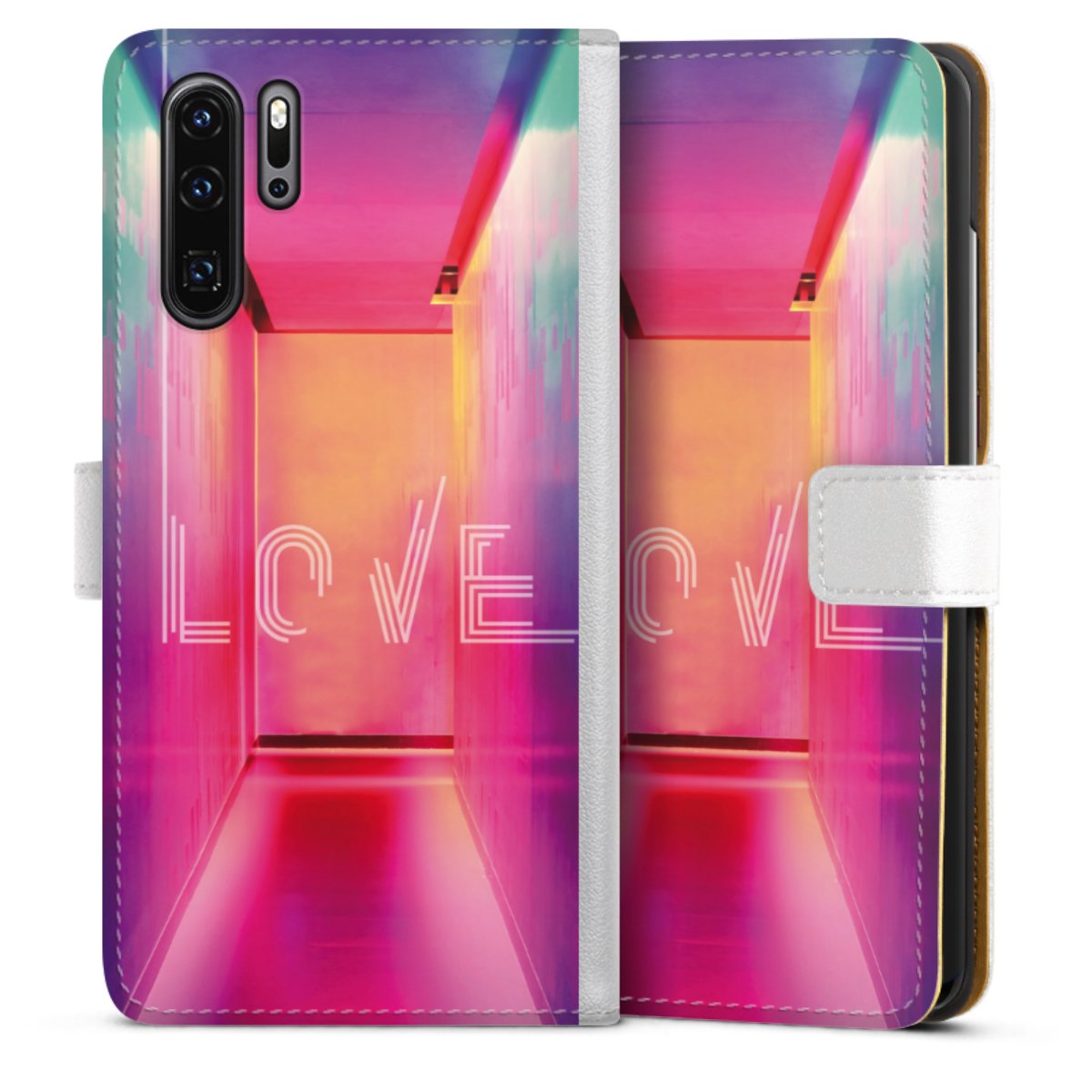For our Sideflip Case we are using our advanced direct printing technology. The back and frontside are fully printabale, the inside of the phone bag is left unprinted. You can order the phone case without print, printed completely or also with a partial print.