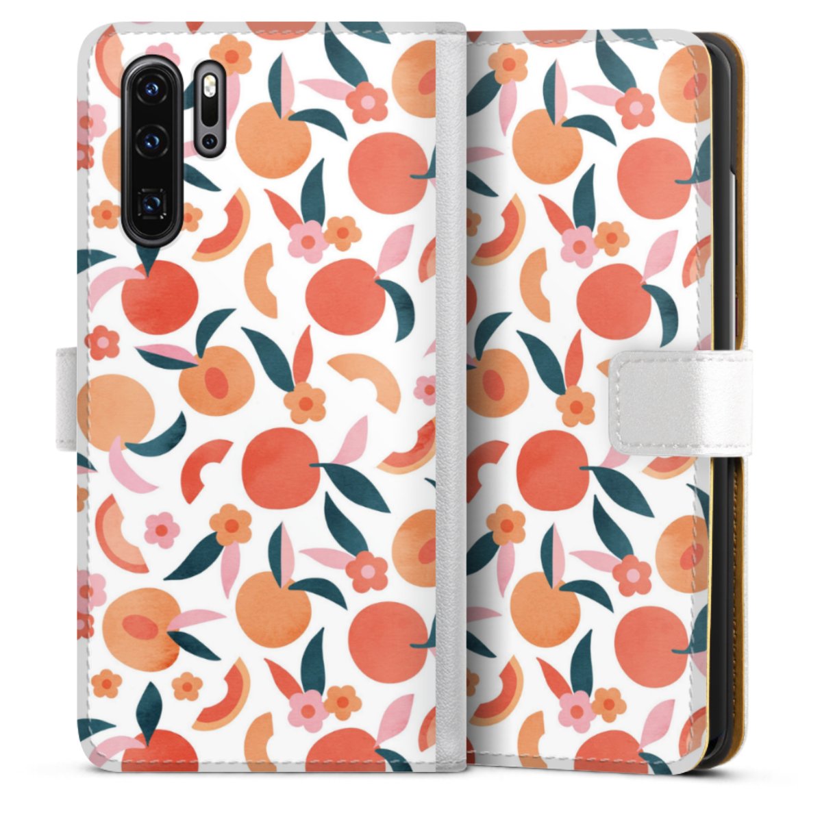 For our Sideflip Case we are using our advanced direct printing technology. The back and frontside are fully printabale, the inside of the phone bag is left unprinted. You can order the phone case without print, printed completely or also with a partial print.