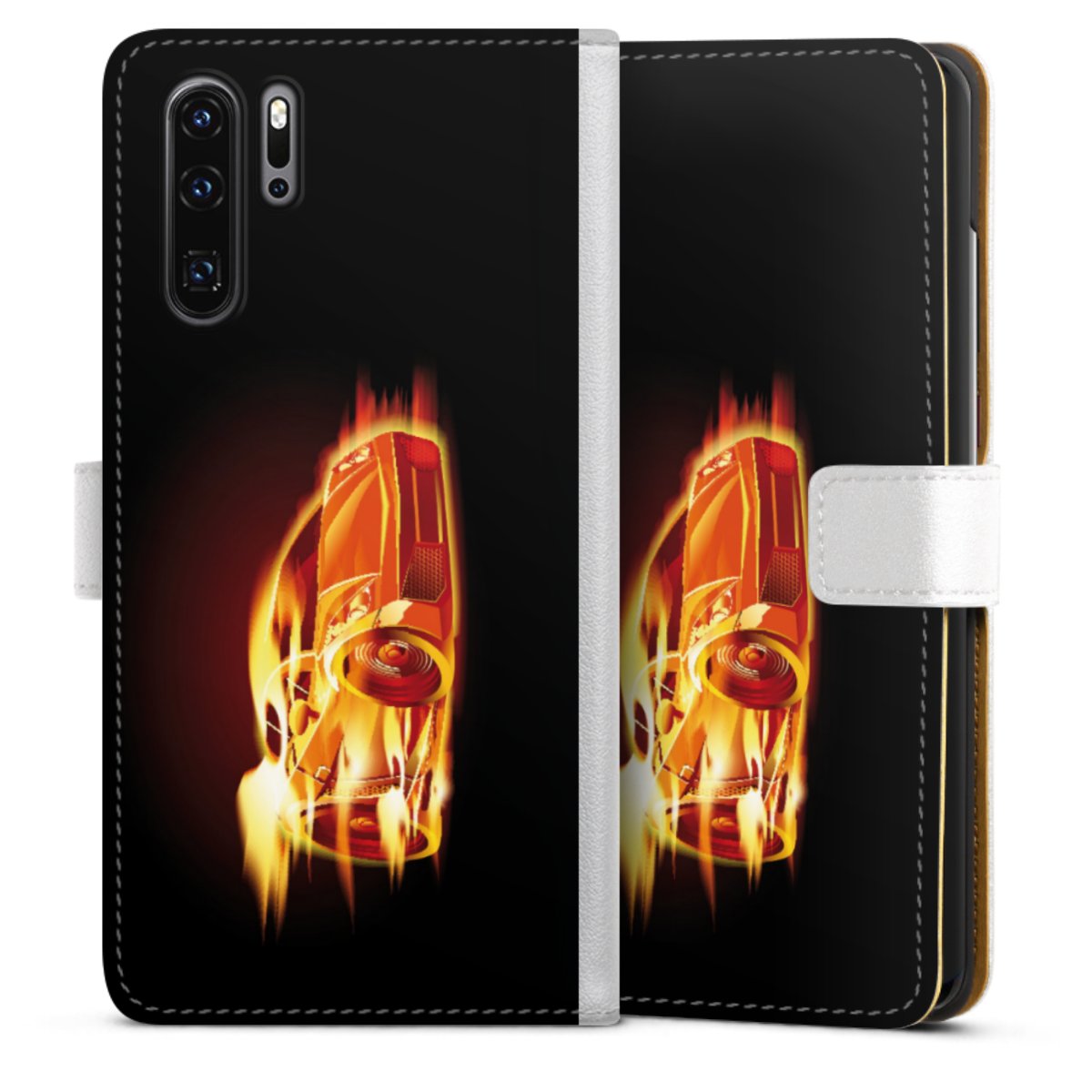 For our Sideflip Case we are using our advanced direct printing technology. The back and frontside are fully printabale, the inside of the phone bag is left unprinted. You can order the phone case without print, printed completely or also with a partial print.