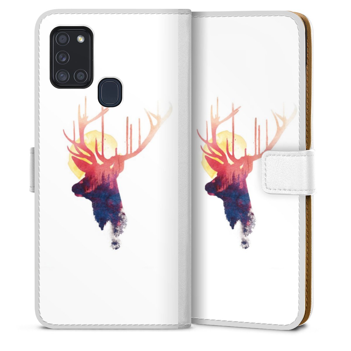 For our Sideflip Case we are using our advanced direct printing technology. The back and frontside are fully printabale, the inside of the phone bag is left unprinted. You can order the phone case without print, printed completely or also with a partial print.