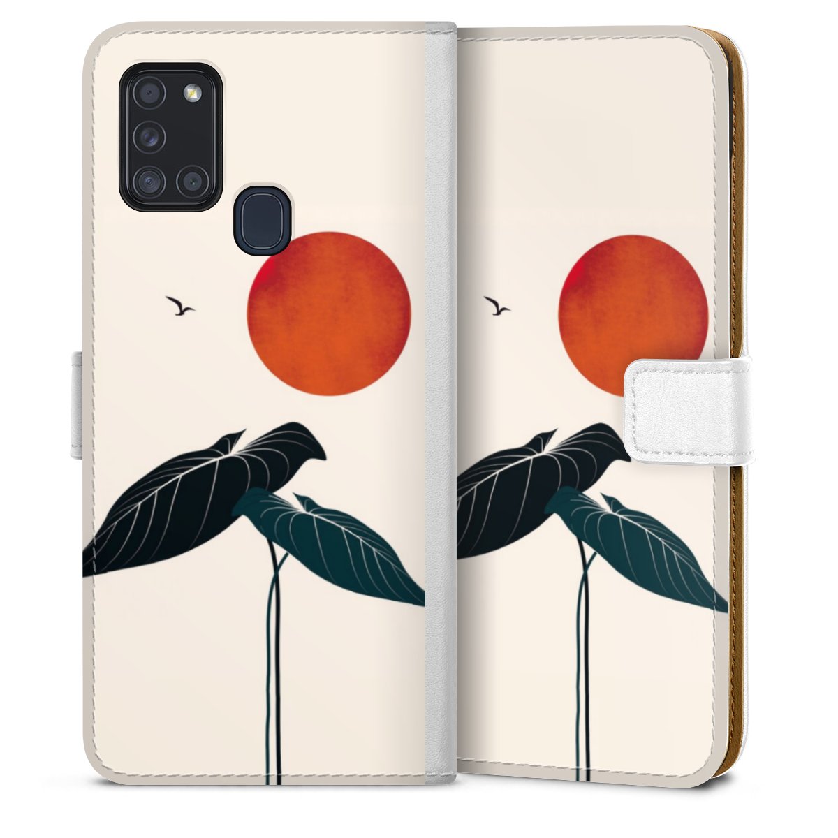 For our Sideflip Case we are using our advanced direct printing technology. The back and frontside are fully printabale, the inside of the phone bag is left unprinted. You can order the phone case without print, printed completely or also with a partial print.
