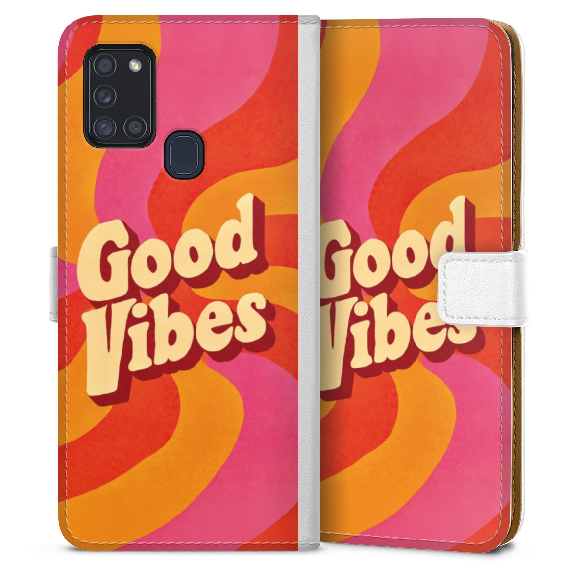 For our Sideflip Case we are using our advanced direct printing technology. The back and frontside are fully printabale, the inside of the phone bag is left unprinted. You can order the phone case without print, printed completely or also with a partial print.