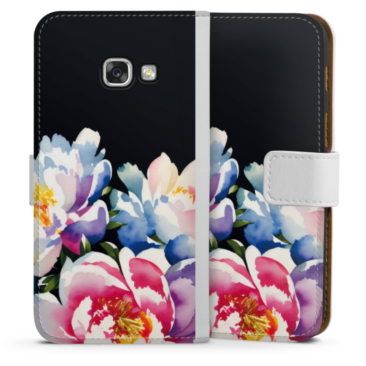 For our Sideflip Case we are using our advanced direct printing technology. The back and frontside are fully printabale, the inside of the phone bag is left unprinted. You can order the phone case without print, printed completely or also with a partial print.