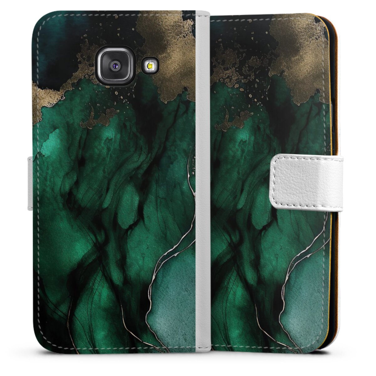 For our Sideflip Case we are using our advanced direct printing technology. The back and frontside are fully printabale, the inside of the phone bag is left unprinted. You can order the phone case without print, printed completely or also with a partial print.