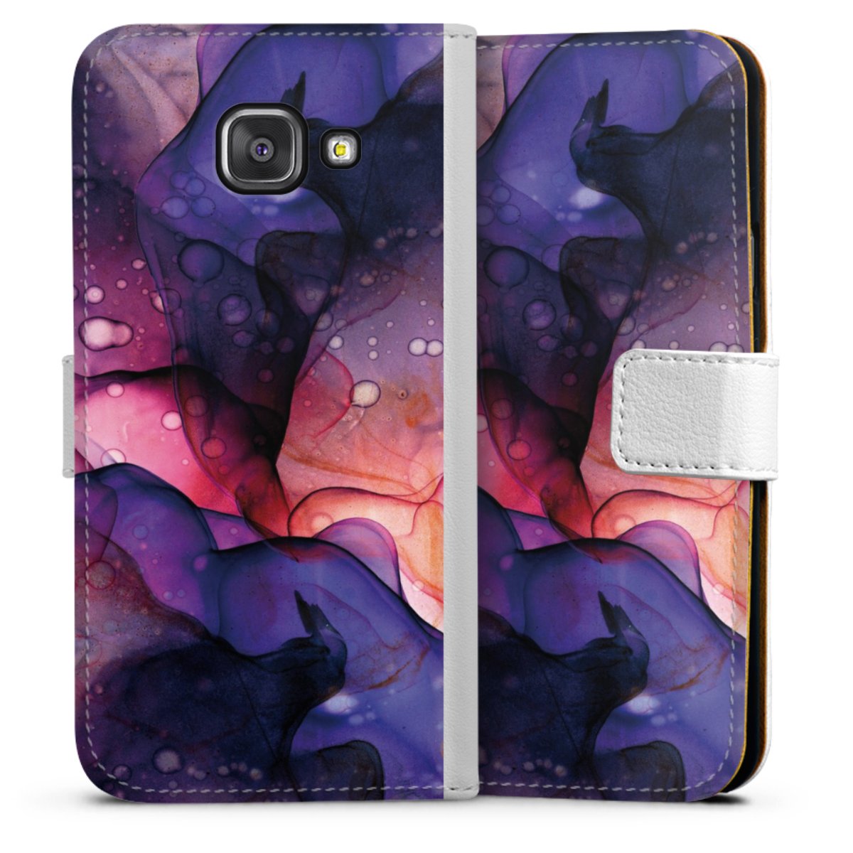 For our Sideflip Case we are using our advanced direct printing technology. The back and frontside are fully printabale, the inside of the phone bag is left unprinted. You can order the phone case without print, printed completely or also with a partial print.