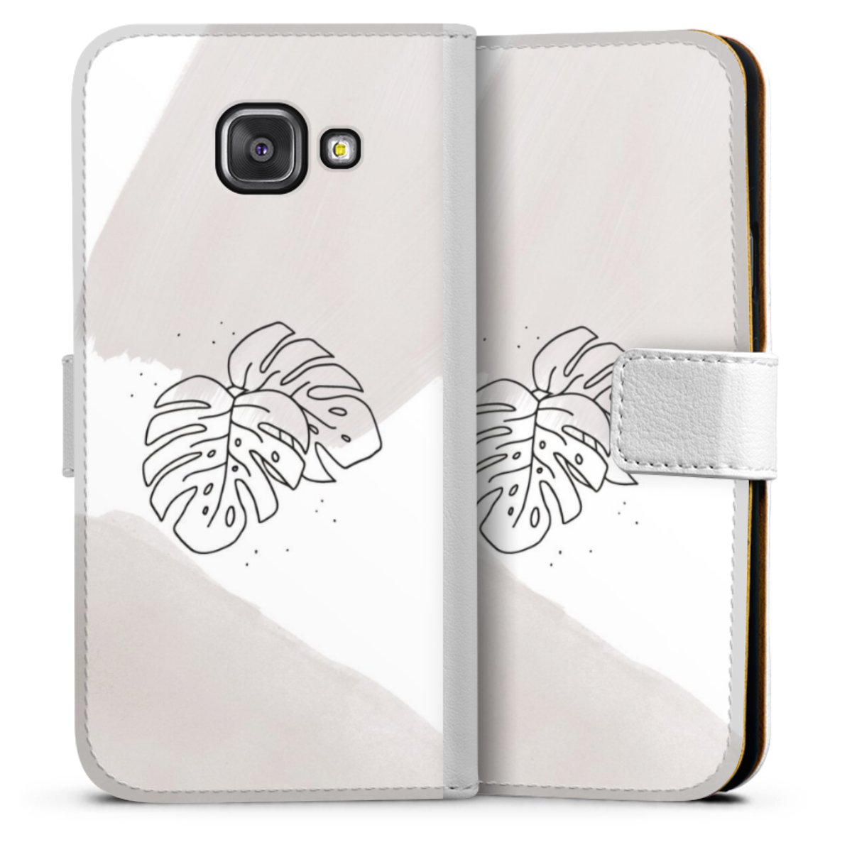 For our Sideflip Case we are using our advanced direct printing technology. The back and frontside are fully printabale, the inside of the phone bag is left unprinted. You can order the phone case without print, printed completely or also with a partial print.