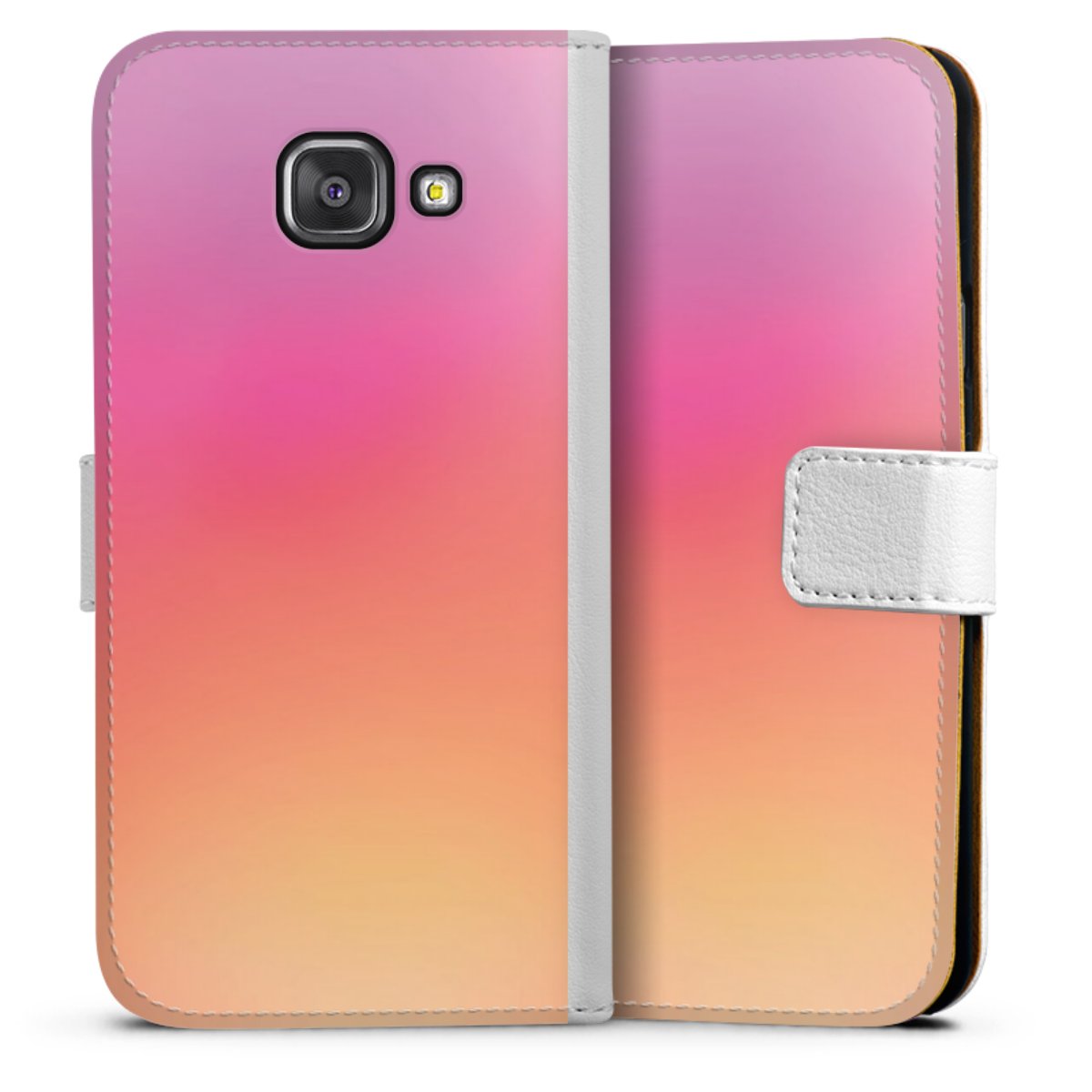 For our Sideflip Case we are using our advanced direct printing technology. The back and frontside are fully printabale, the inside of the phone bag is left unprinted. You can order the phone case without print, printed completely or also with a partial print.
