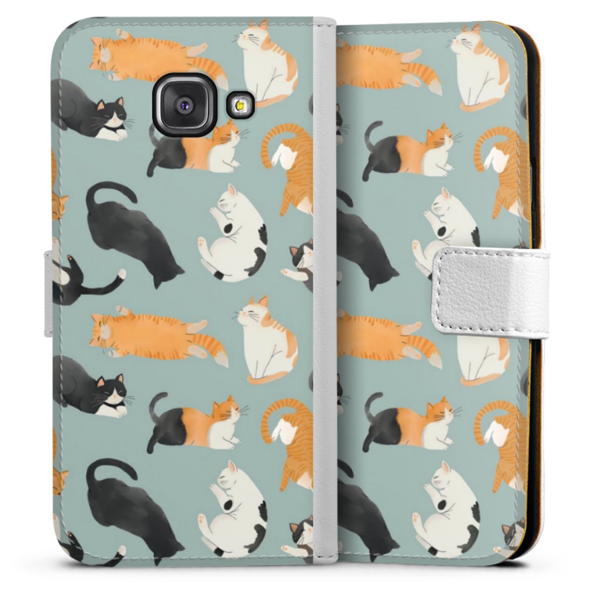 For our Sideflip Case we are using our advanced direct printing technology. The back and frontside are fully printabale, the inside of the phone bag is left unprinted. You can order the phone case without print, printed completely or also with a partial print.