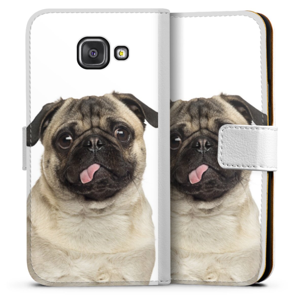 For our Sideflip Case we are using our advanced direct printing technology. The back and frontside are fully printabale, the inside of the phone bag is left unprinted. You can order the phone case without print, printed completely or also with a partial print.