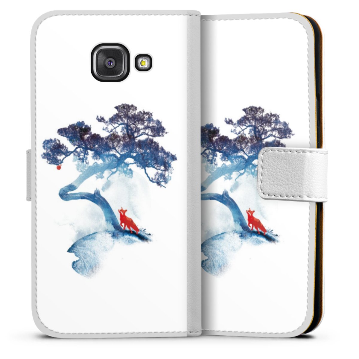 For our Sideflip Case we are using our advanced direct printing technology. The back and frontside are fully printabale, the inside of the phone bag is left unprinted. You can order the phone case without print, printed completely or also with a partial print.