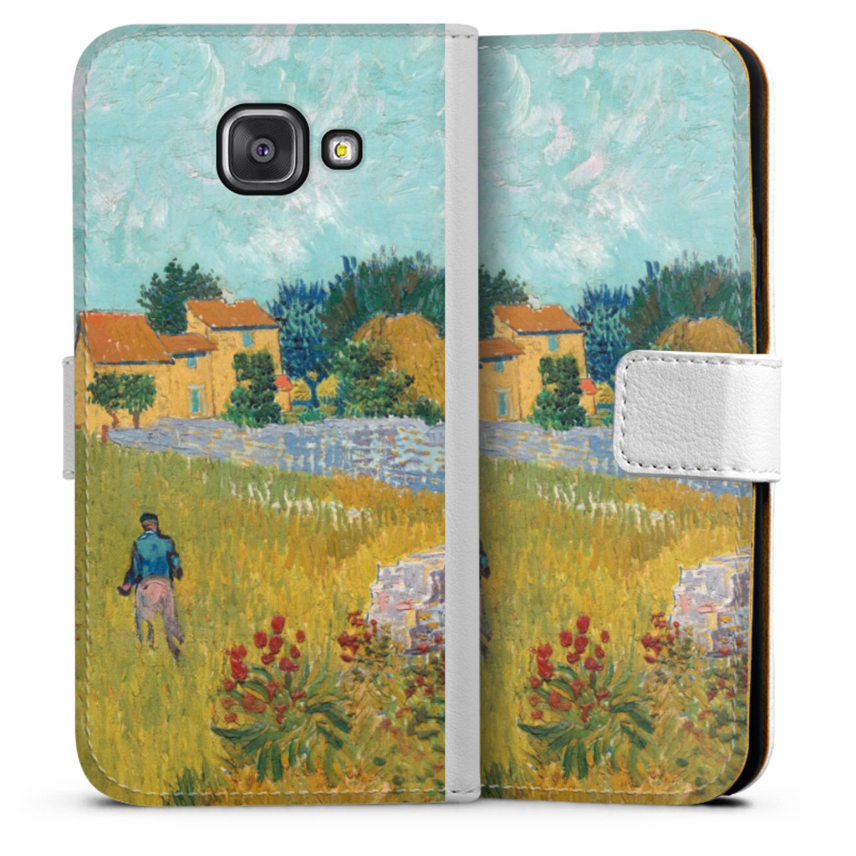 For our Sideflip Case we are using our advanced direct printing technology. The back and frontside are fully printabale, the inside of the phone bag is left unprinted. You can order the phone case without print, printed completely or also with a partial print.