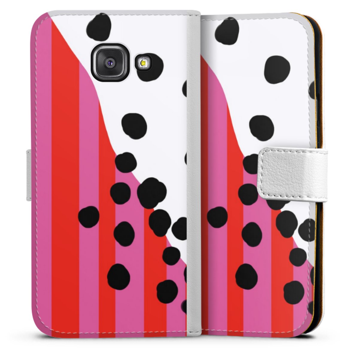 For our Sideflip Case we are using our advanced direct printing technology. The back and frontside are fully printabale, the inside of the phone bag is left unprinted. You can order the phone case without print, printed completely or also with a partial print.