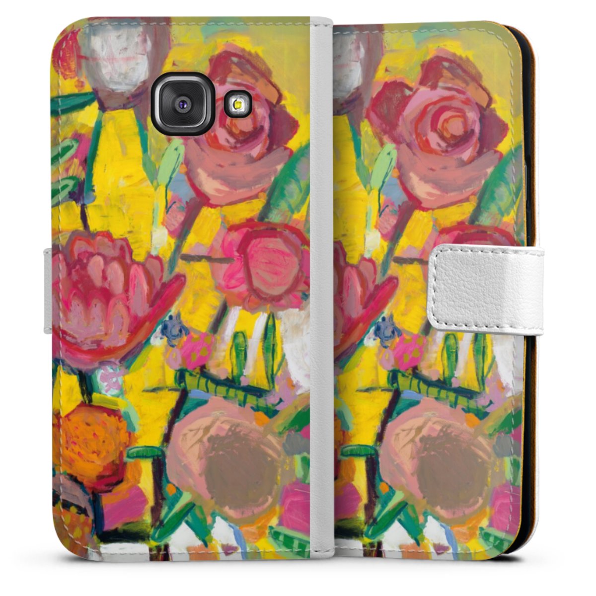 For our Sideflip Case we are using our advanced direct printing technology. The back and frontside are fully printabale, the inside of the phone bag is left unprinted. You can order the phone case without print, printed completely or also with a partial print.