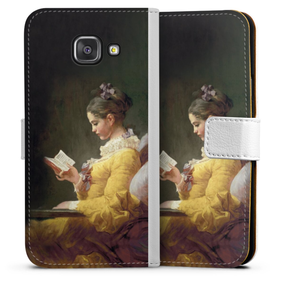 For our Sideflip Case we are using our advanced direct printing technology. The back and frontside are fully printabale, the inside of the phone bag is left unprinted. You can order the phone case without print, printed completely or also with a partial print.