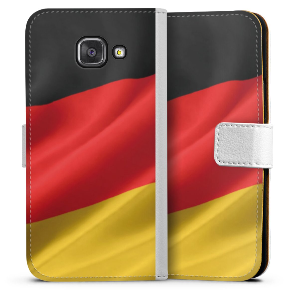 For our Sideflip Case we are using our advanced direct printing technology. The back and frontside are fully printabale, the inside of the phone bag is left unprinted. You can order the phone case without print, printed completely or also with a partial print.